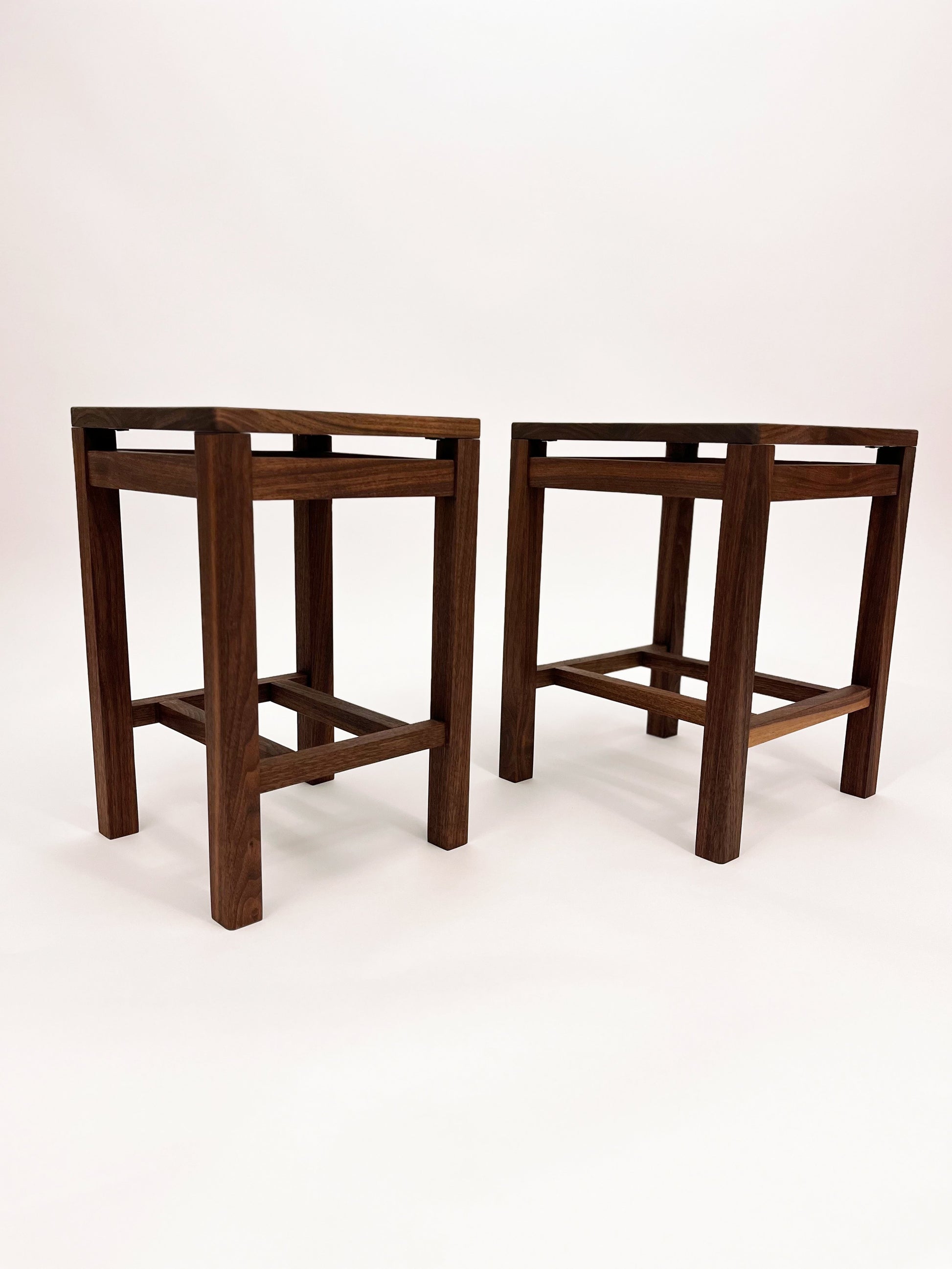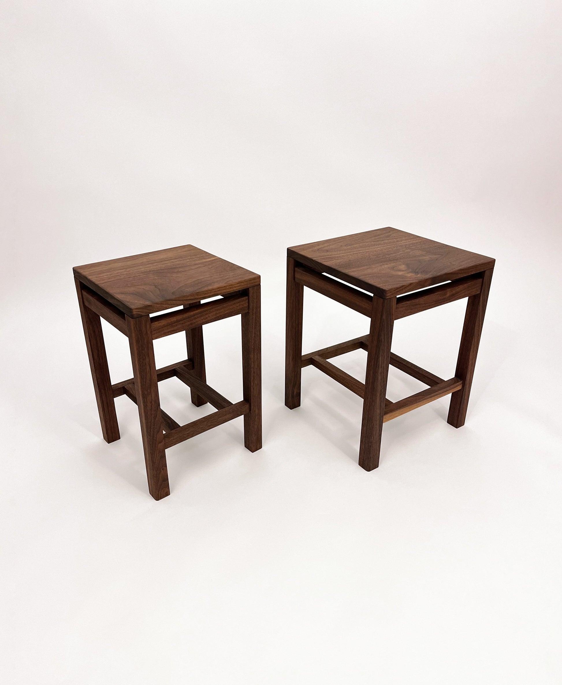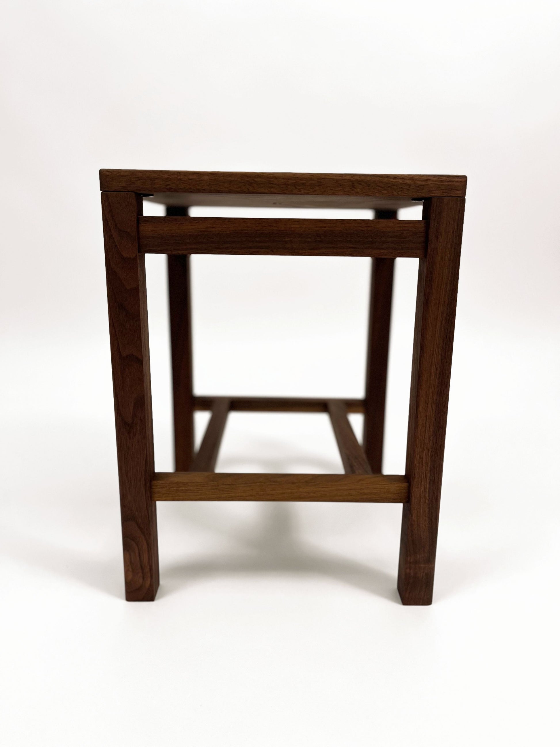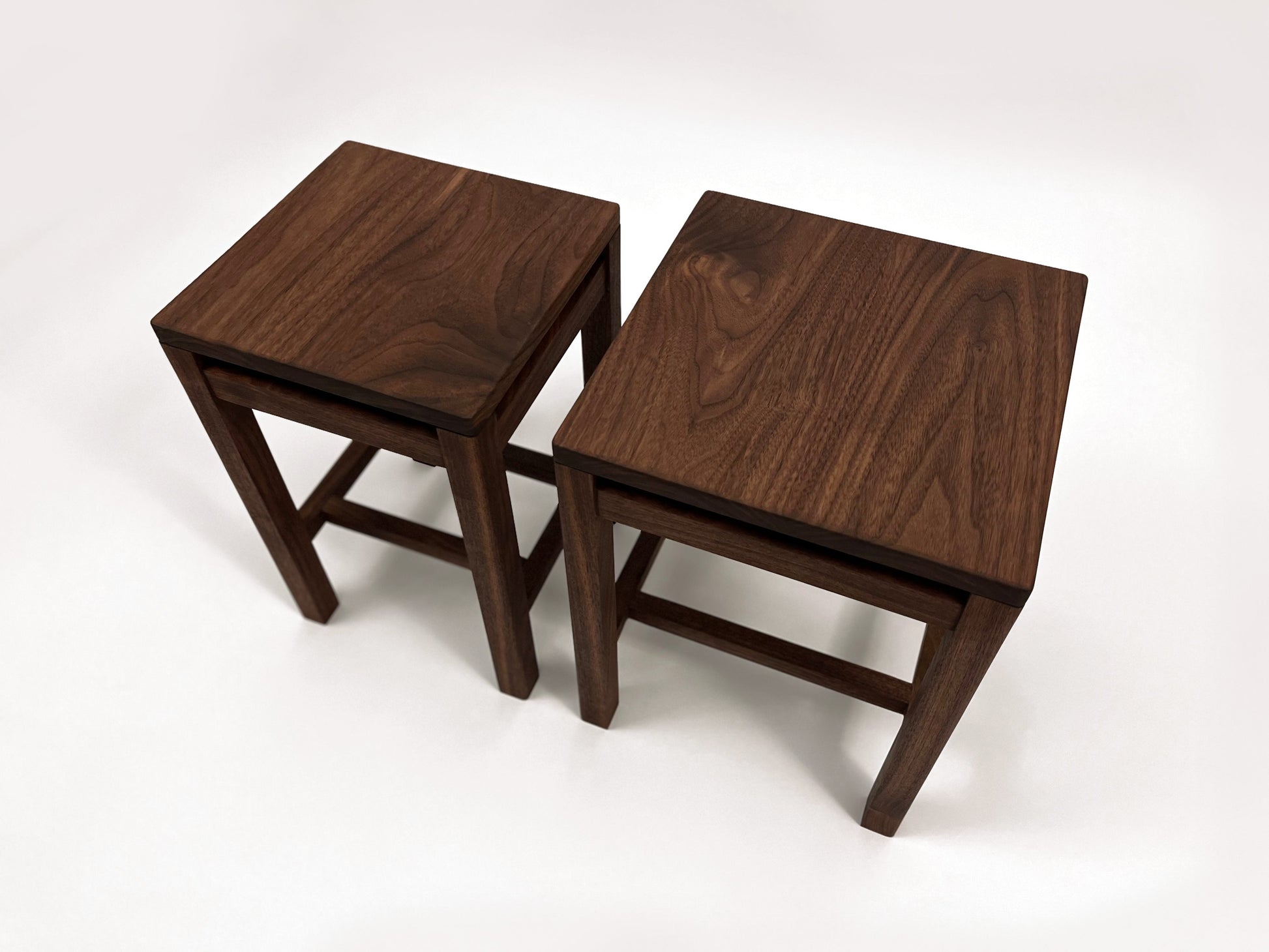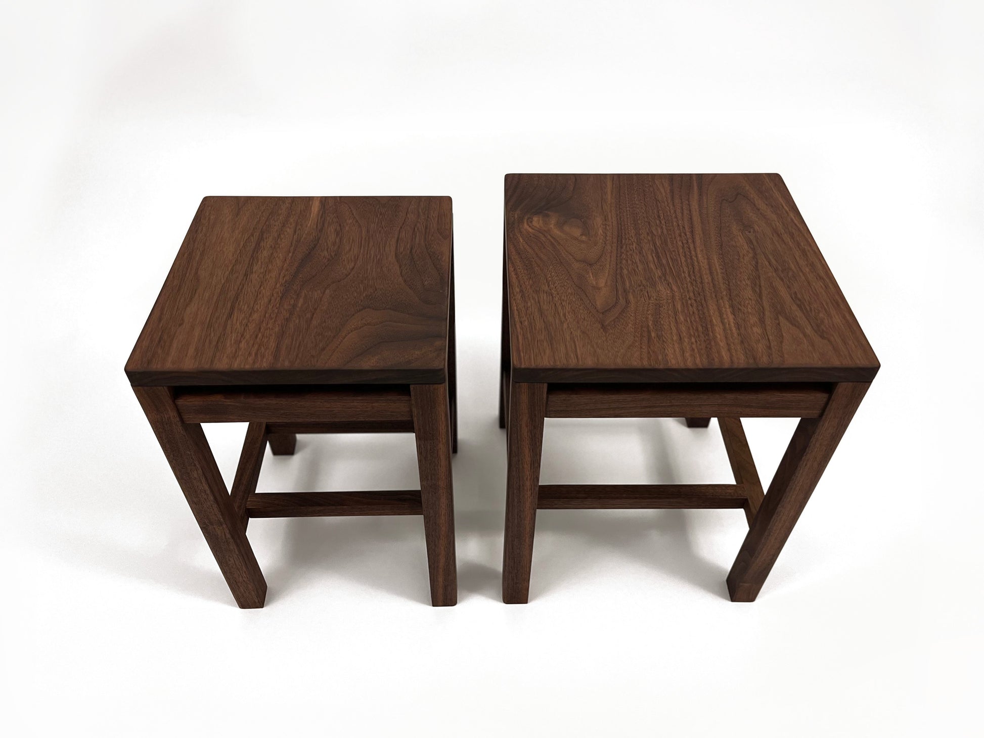 Deze set van twee bijzettafels is volledig handgemaakt van Amerikaans notenhout (walnut). Notenhout is een gewilde houtsoort en wordt door velen gezien als een van de mooiste en fijnste houtsoorten om hoogwaardige meubels van te maken.